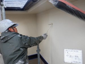 天井まわりの塗装作業は体力を使います。