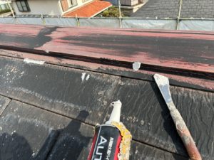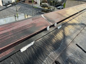 姫路市戸建て住宅の屋根棟押さえコーキング工事を施工させていただきました。