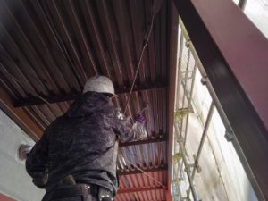 養生→ケレン→錆止め下塗り→トップコート2回塗り