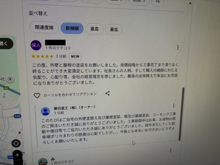 お忙しいところ口コミ評価ありがとうございました。