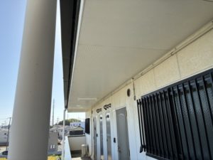 集合住宅廊下天井鉄部の塗装、塗替え工事を施工させていただきました。