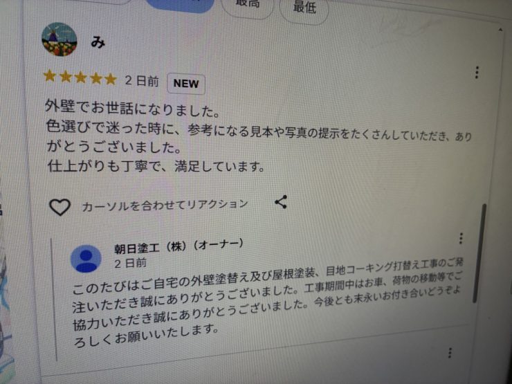 姫路市内戸建て住宅の塗装、塗替え工事のオーナー様から評価いただきました。