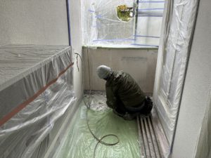 陸上自衛隊シャワー室内壁の塗装、塗替え工事に入らせていただいております。