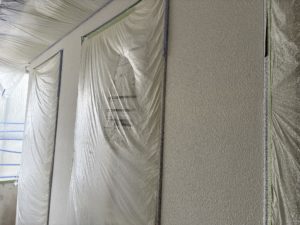 養生完了後、パテ処理→シーラー下塗り→レナラック吹付けの工程に進んでおります。
