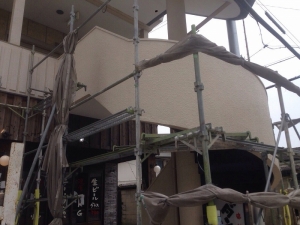 一般の人が車を当て階段の外壁が一部破損した現場でした。