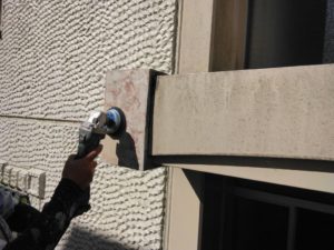 養生→下地サンダーケレン→清掃→エポキシ樹脂錆止め下塗り→