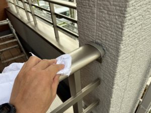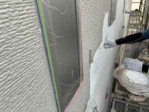 高圧洗浄完了後に養生工程及び塗装工程に移ります。