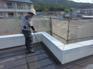 屋根は金属屋根の上に遮熱型塗料を施工しました。