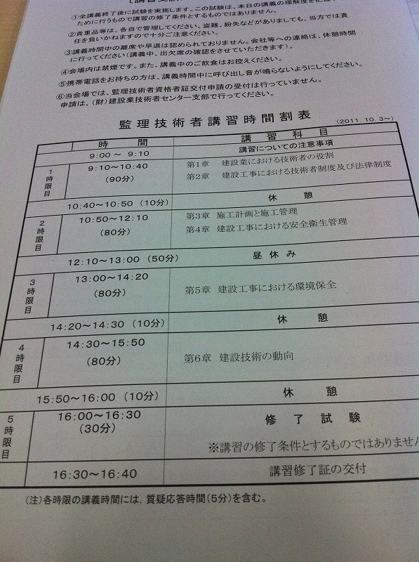 先日、大阪で国土交通省監理技術者の講習を受けてきました。