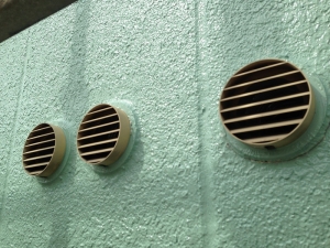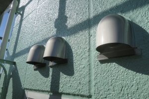 先日、塗装、塗り替え施工中の建物で丸型換気フードの交換をしました。