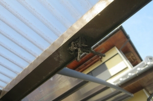 あっという間にポリカ波板をステンレスフックで張り付けました。