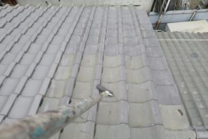 高圧洗浄→陶器瓦用塗料下塗り→陶器瓦用塗料上塗りの工程で施工しました。
