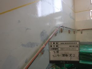 また、吹付け作業は塗料の飛散の恐れがあったので、