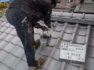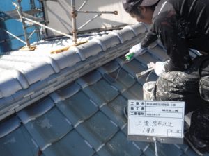 高圧洗浄→陶器瓦用塗料下塗り→陶器瓦用塗料上塗りの工程で施工しました。