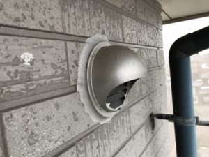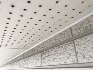 穴あき箇所をコーキングで処理し簡易補修をさせていただきました。