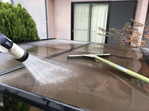 作業床は台車が常に通行するので塗膜が削れていました。