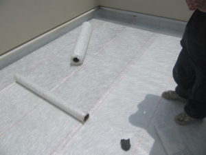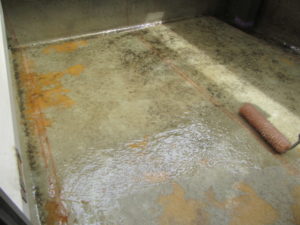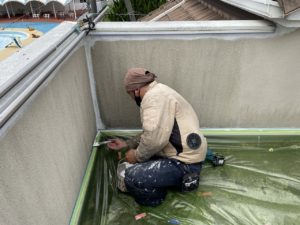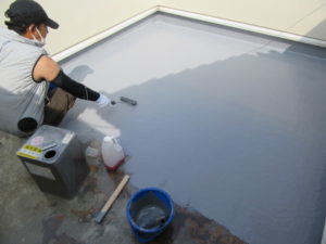 FRP樹脂防水2回目(マット敷き込み)→トップコート1回目→