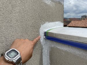 養生→フィラー下塗り→中塗り→上塗りの工程で施工いたしました。