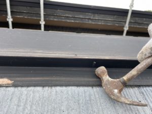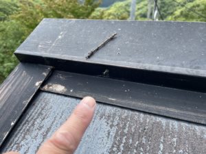 屋根棟押えのクギの浮き、カラーベスト塗膜劣化が発生していました。