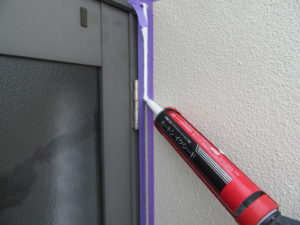 ガラス周囲とビス頭、クギ頭の防水処理を施工しました。