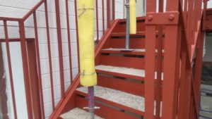 アパート外部階段の塗装、塗替え工事を施工させていただいております。
