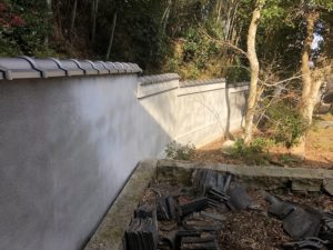 養生→シーラー下塗り→リシン下吹き→リシン上吹き