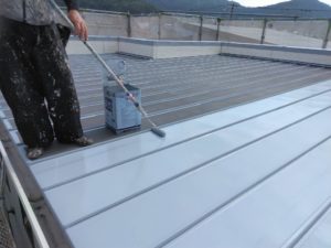 屋根ガルバニウムの塗装、塗替え工事を施工させていただいております。