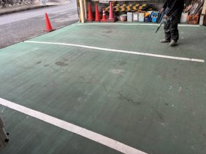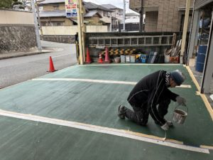 事務所駐車場床の塗装、塗替え工事を施工させていただきました。
