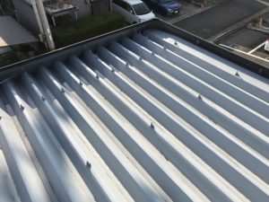 鉄製折板屋根表面の塗膜劣化、錆が発生していました。