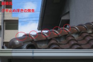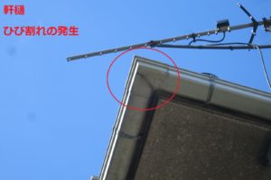 外壁にクラックの発生、樋の破損、瓦の止め金物の浮き、