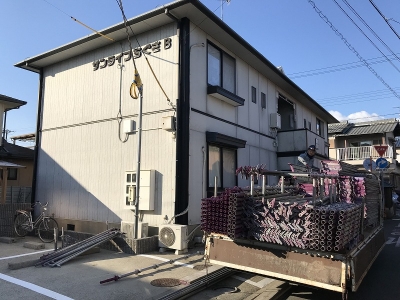 先日、兵庫県高砂市で足場を組み立てしました。