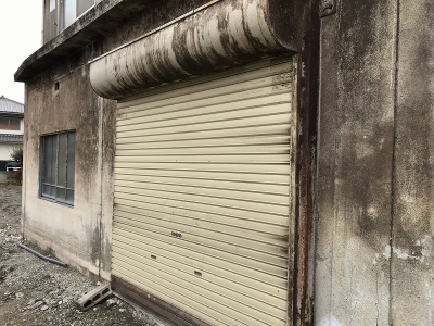 シャッターは枠の板金補修が必要でした。