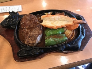 いつもながらタレとステーキと海老がうまいです。