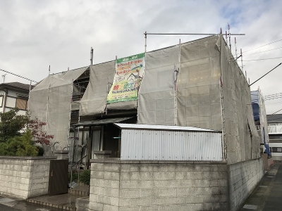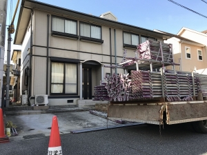 先日、姫路市内アパート集合住宅の足場を組立てました。