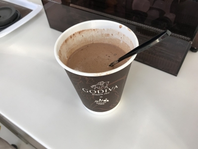 ゴディバの袋からチョコ粉末をカップに入れて、