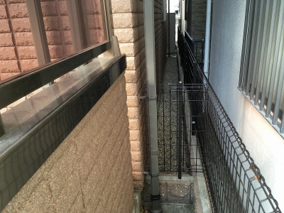 神戸市内の市街地で狭小地のため周囲との敷地スペースが狭かったです。