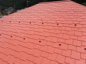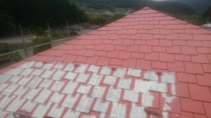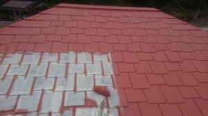 先日、猛暑の中屋根カラーベストの塗装、塗替え工事を施工致しました。
