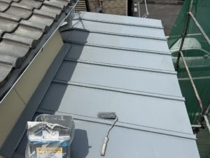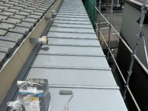 養生→シーラー下塗り→トップコート2回塗りの工程で工事を進めております。