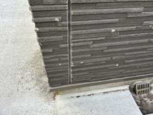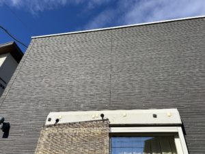 鋼管足場→飛散防止メッシュシート張り→高圧洗浄→目地コーキング→