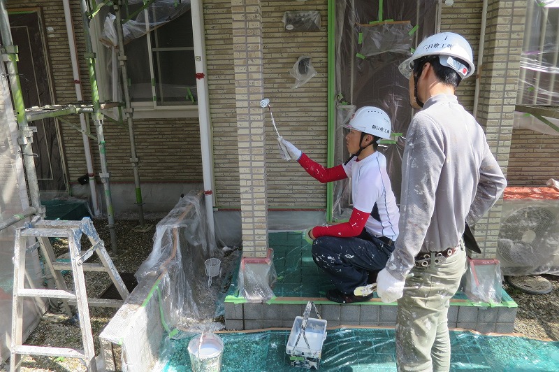 3ヶ月試用期間中の新人が現場塗装作業の勉強をしております。