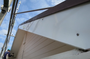 板金にて破風の補修工事をさせていただきました。