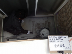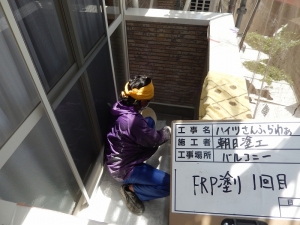 先日、バルコニ床のFRP防水工事を施工させていただきました。