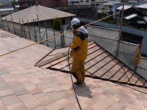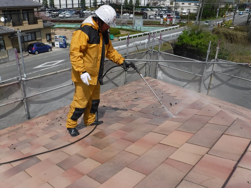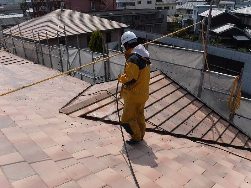 先日、瓦の高圧洗浄をさせていただきました。