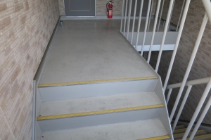 階段廊下踊場床にタキロン㈱のタキステップ、タキストロンを施工することによって