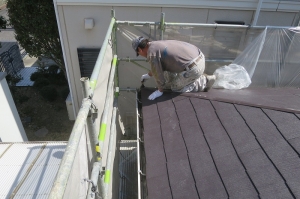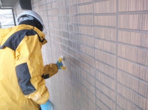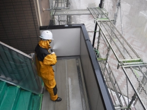 浜手や工場の近く、線路際の建物の塗り替え工事は、下地の洗浄と