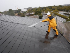 通常の高圧洗浄とブラシ洗いを併用して下地処理を行いました。