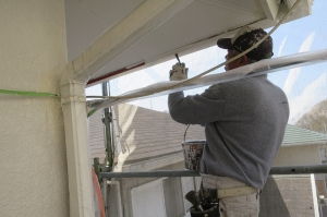 下地の外壁の塗膜がスタッコ吹き付け仕上げでした。