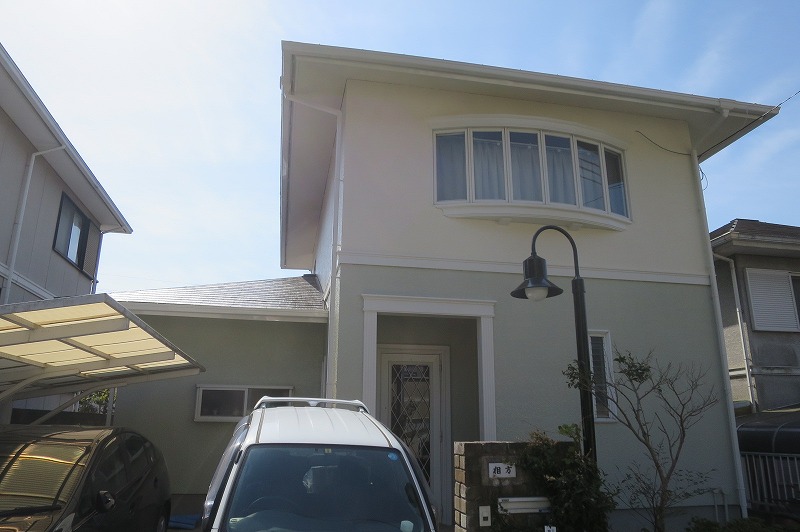 外壁色は薄いグリーンとクリームのツートン仕上げで塗装させていただきました。