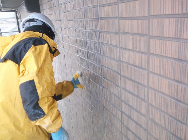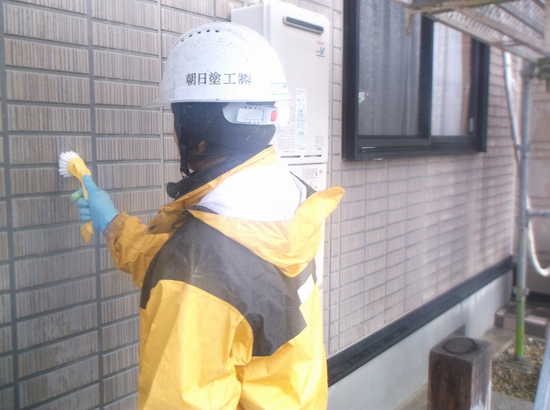 通常の高圧洗浄とブラシ洗いを併用して下地処理を行いました。