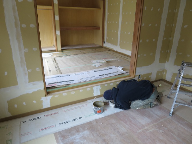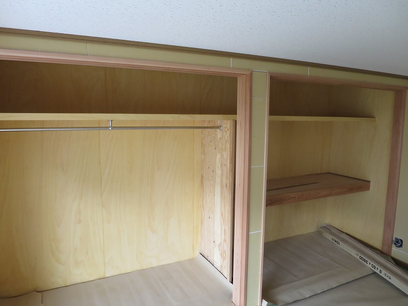 新築戸建の内部の建具枠、押入れ枠、窓枠木部の塗装工事をさせていただきました。